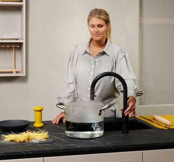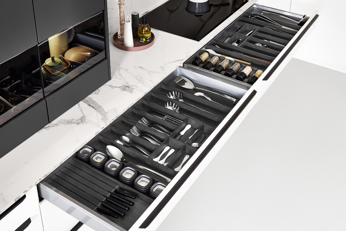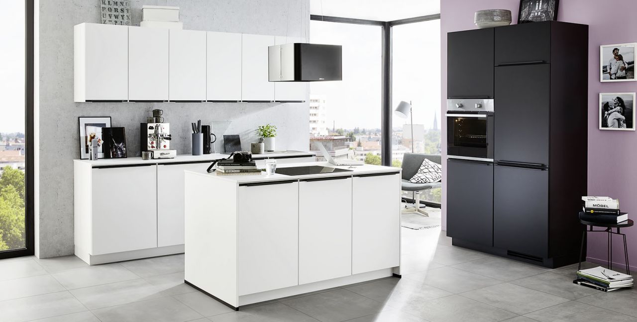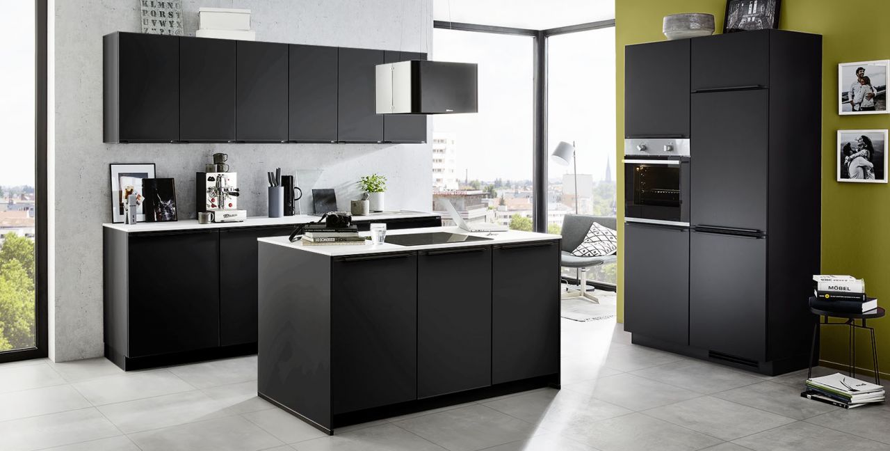 Inklusive Einbaubackofen Edelstahl Laurus LEB3 Energieeffizienzklasse A, Glaskeramik Kochfeld mit Induktion Laurus LIA600, Inselesse Edelstahl Airforce F181BK Energieeffizienzklasse B, Kühlschrank Laurus LKS88E Energieeffizienzklasse E, Einbauspüle Edelstahl Rodi Okio Line 85 Deep, XL-Schränken.