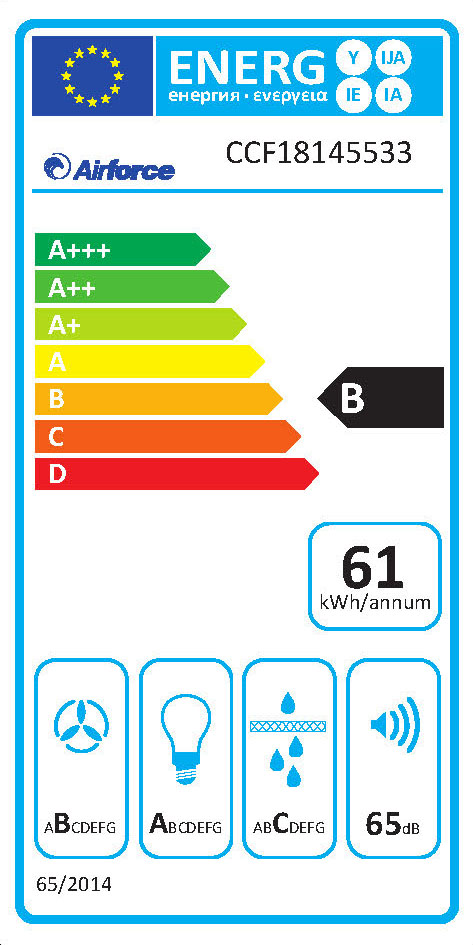 Energieeffizienzklassen und Spektren: Backöfen, Herde und Dunstabzüge A+++ - D. Geschirrspüler und Kühl-/Gefrierschränke A - G und Leuchtmittel A++ - E.
